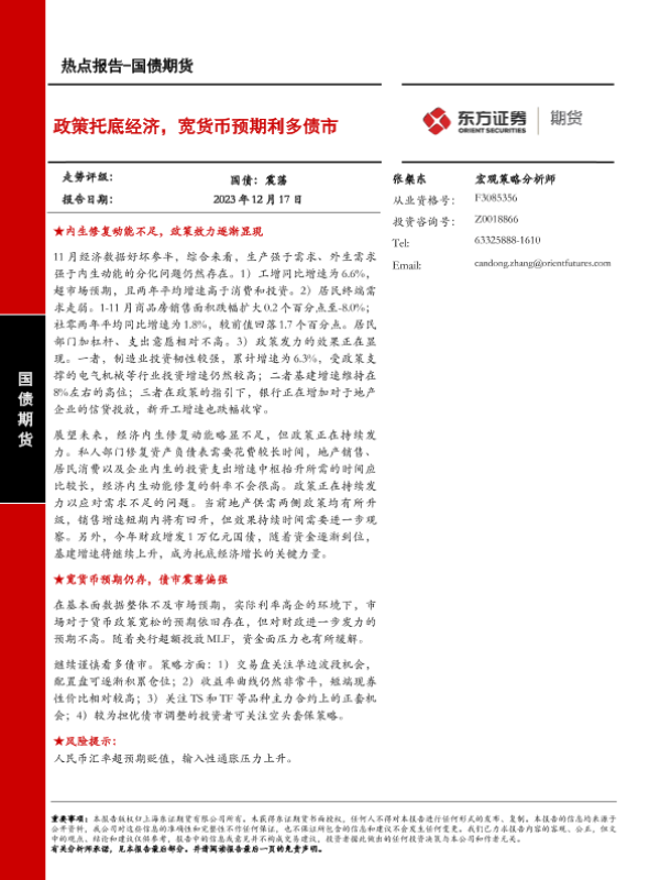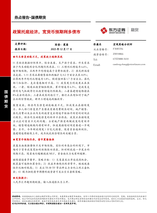 【东证期货】【20231217】国债期货热点报告:政策托底经济,宽货币预期利多债市-11页