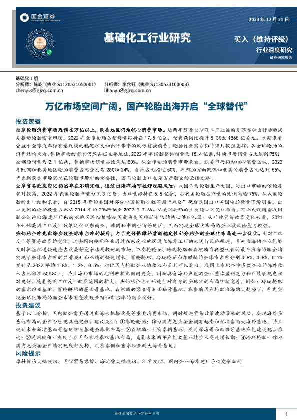 【国金证券】【20231221】基础化工行业研究:万亿市场空间广阔,国产轮胎出海开启“全球替代”-19页