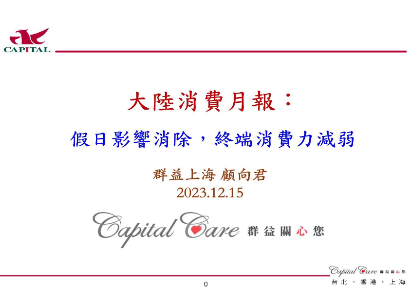 【群益证券】【20231215】大陆消费月报:假日影响消除,终端消费力减弱-13页