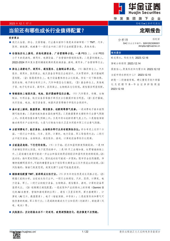 【华金证券】【20231217】当前还有哪些成长行业值得配置?-22页