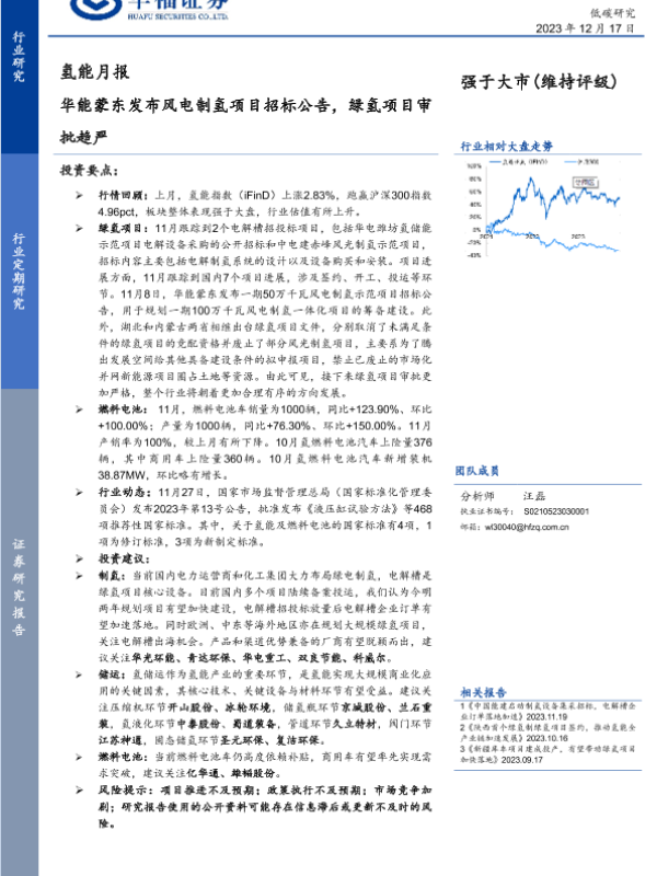【华福证券】【20231217】氢能月报:华能蒙东发布风电制氢项目招标公告,绿氢项目审批趋严-10页