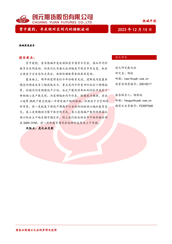 【创元期货】【20231215】烧碱年报:管中窥豹,寻求绝对区间内的错配波动-22页