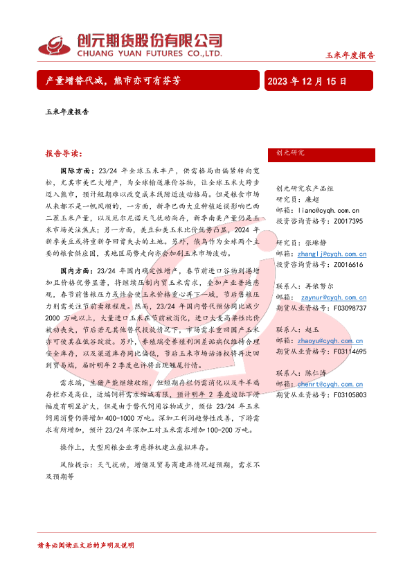 【创元期货】【20231215】玉米年度报告:产量增替代减,熊市亦可有芬芳-25页