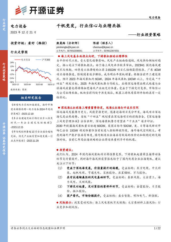 【开源证券】【20231221】电力设备行业投资策略:千帆竞发,行业信心与业绩共振-22页