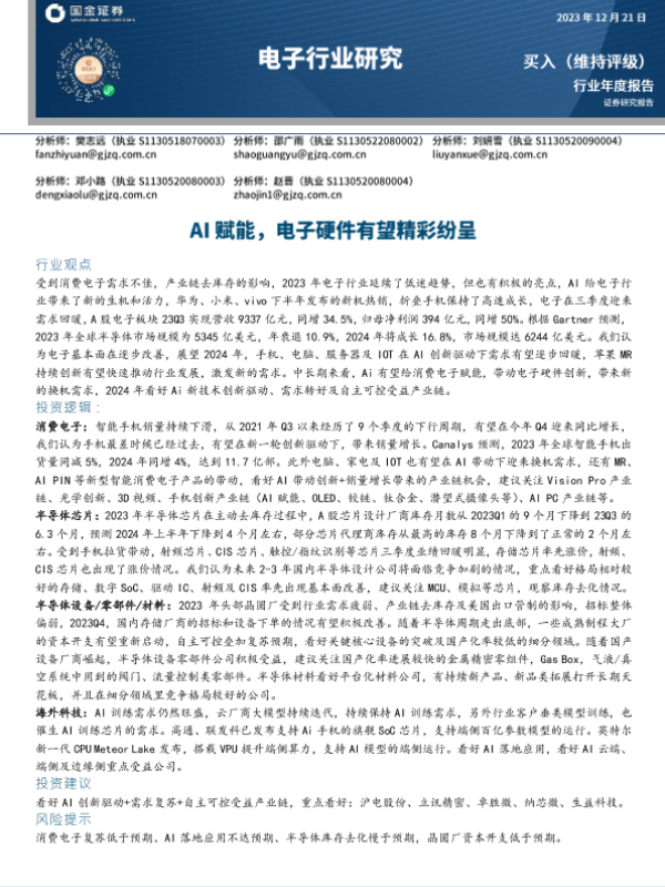【国金证券】【20231221】电子行业研究:AI赋能,电子硬件有望精彩纷呈-73页