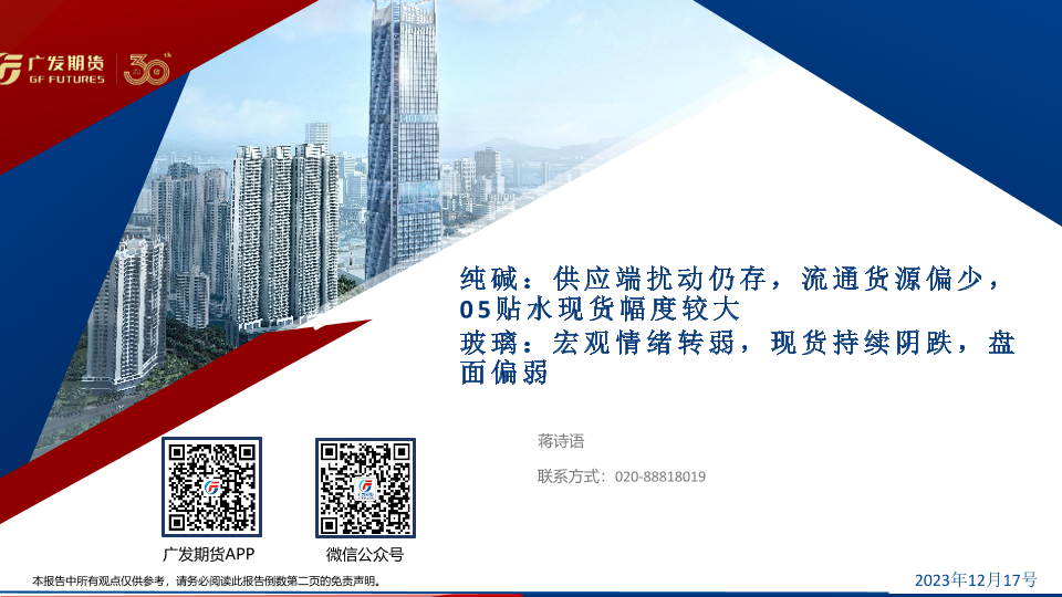【广发期货】【20231217】纯碱:供应端扰动仍存,流通货源偏少,05贴水现货幅度较大 玻璃:宏观情绪转弱,现货持续阴跌,盘面偏弱-38页