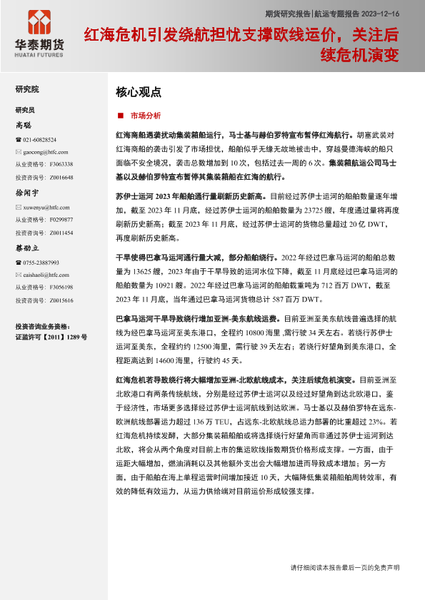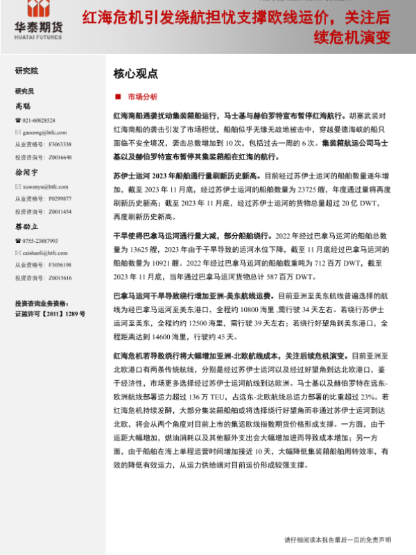 【华泰期货】【20231216】航运专题报告:红海危机引发绕航担忧支撑欧线运价,关注后续危机演变-13页