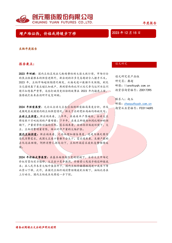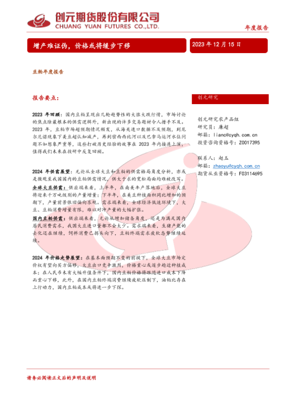 【创元期货】【20231215】豆粕年度报告:增产难证伪,价格或将缓步下移-21页
