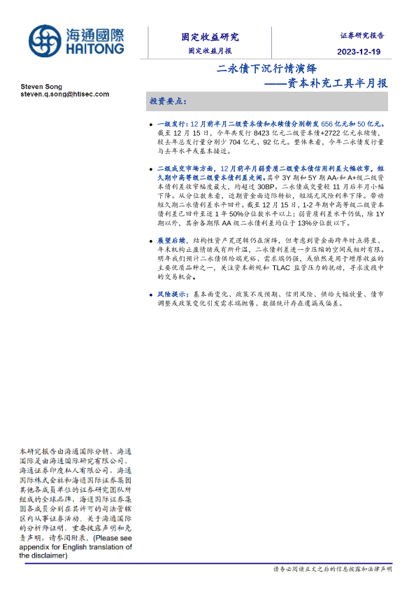 【海通国际】【20231219】资本补充工具半月报:二永债下沉行情演绎-18页
