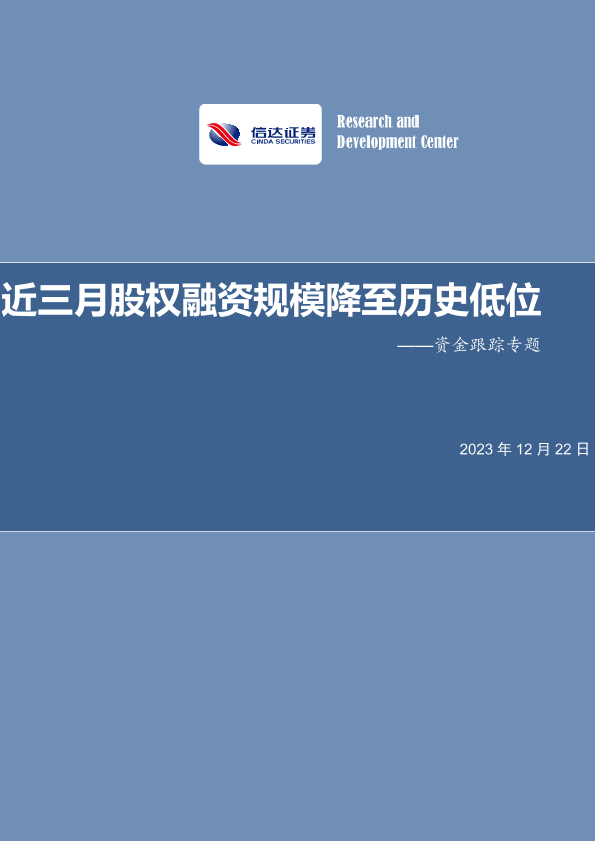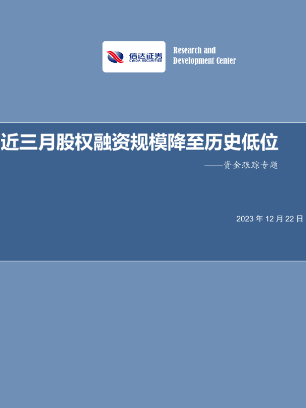 【信达证券】【20231222】资金跟踪专题:近三月股权融资规模降至历史低位-16页