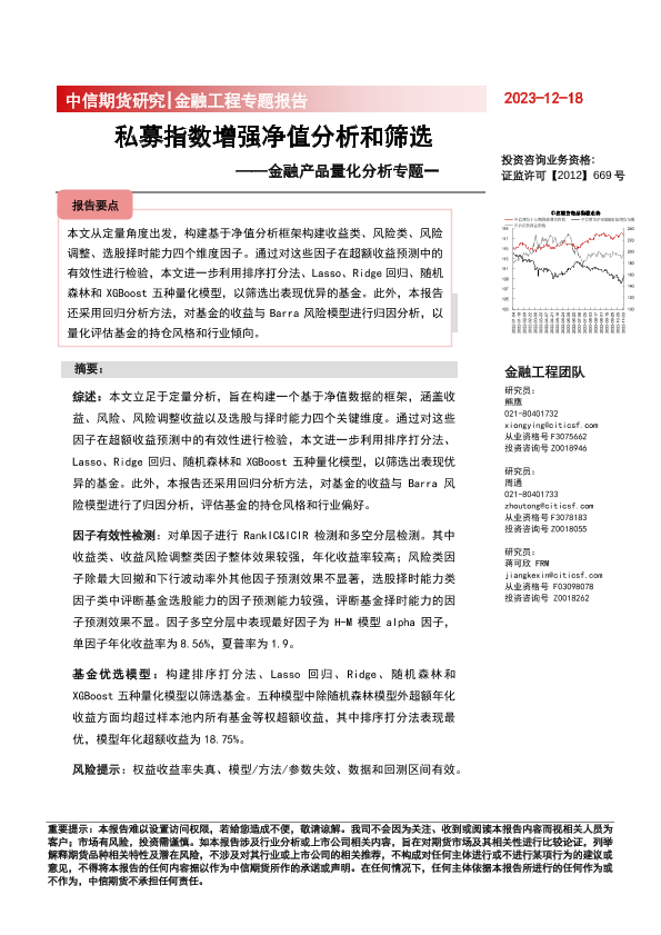 净值分析 基金筛选 私募指数增强 量化模型 风险管理
