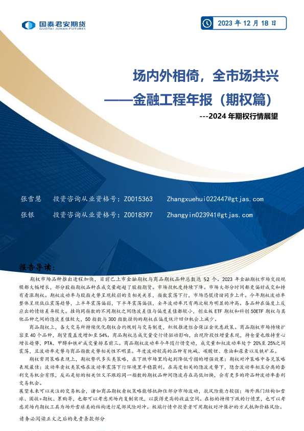 【国泰君安期货】【20231218】金融工程年报(期权篇):场内外相倚,全市场共兴-32页
