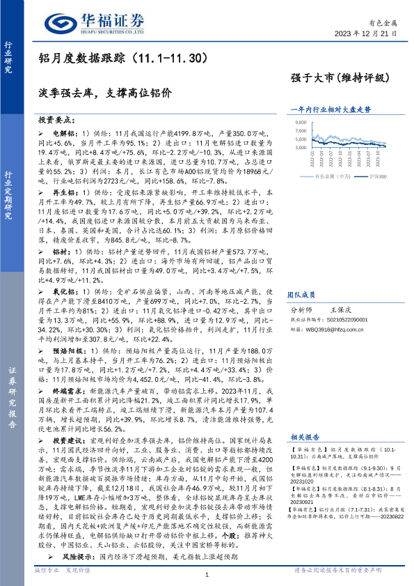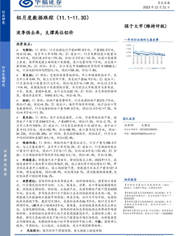 【华福证券】【20231221】铝月度数据跟踪:淡季强去库,支撑高位铝价-15页