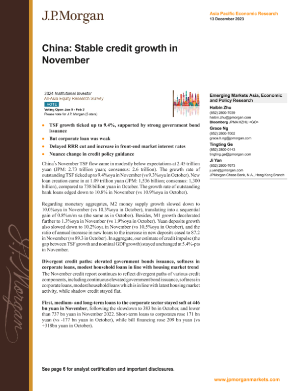 【J.P. Morgan】【20231213】JPMorgan Econ FI-China Stable credit growth in November-10页