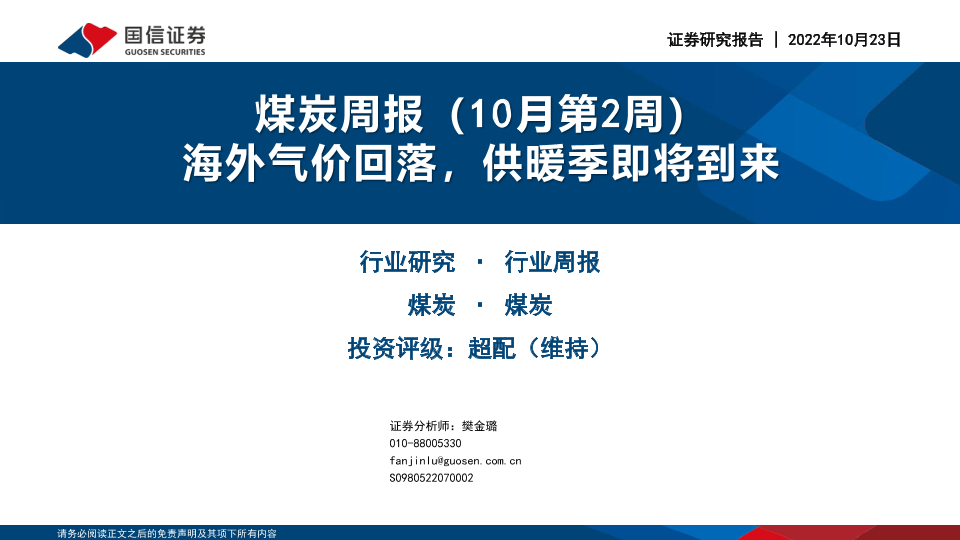 【国信证券】【20221023】煤炭行业周报(10月第2周):海外气价回落,供暖季即将到来-28页