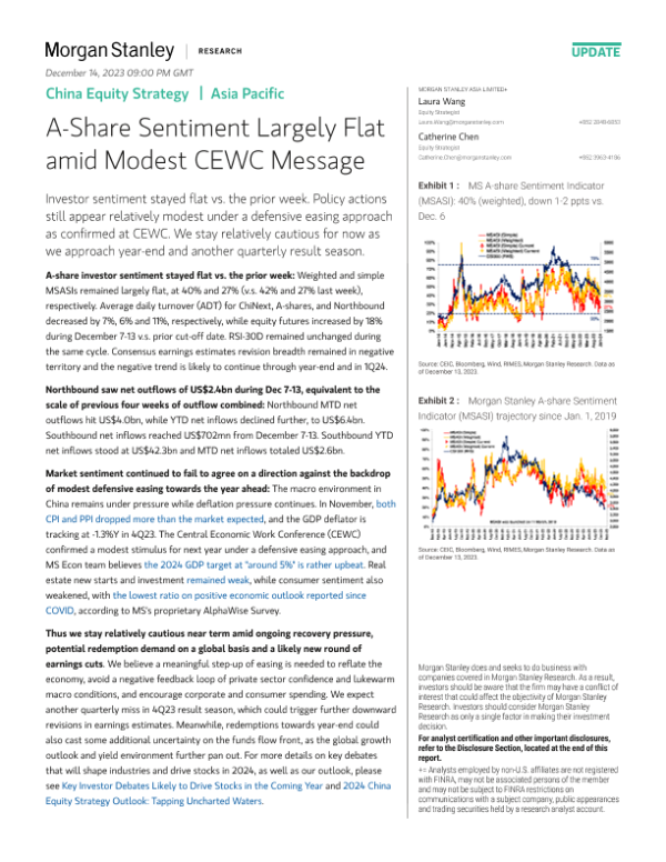 【Morgan Stanley】【202312】China Equity Strategy A-Share Sentiment Largely Flat amid Modest CEWC Message-10页