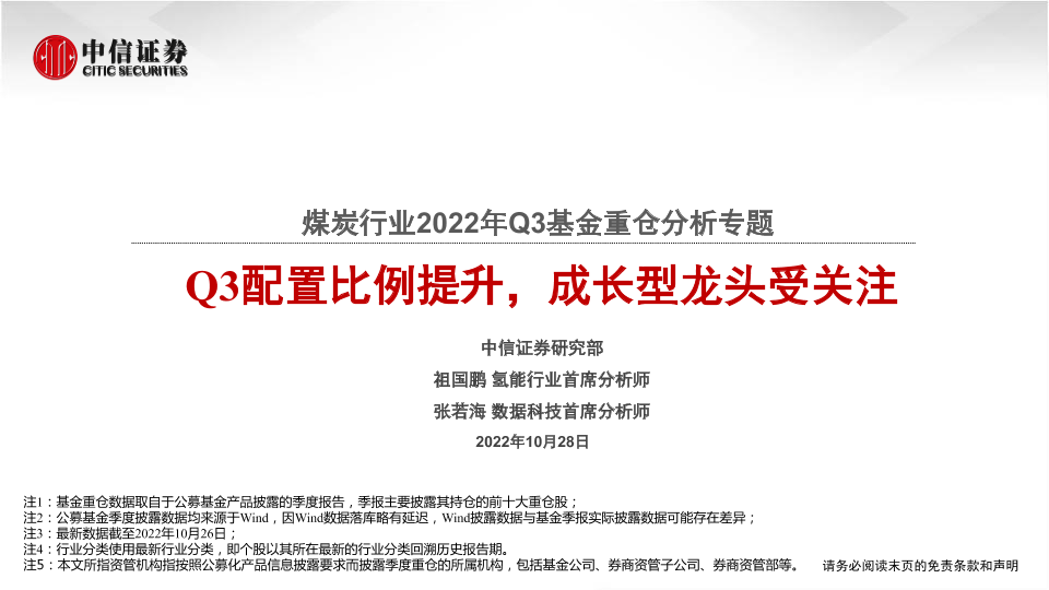 【中信证券】【20221028】煤炭行业2022年Q3基金重仓分析专题:Q3配置比例提升,成长型龙头受关注-19页