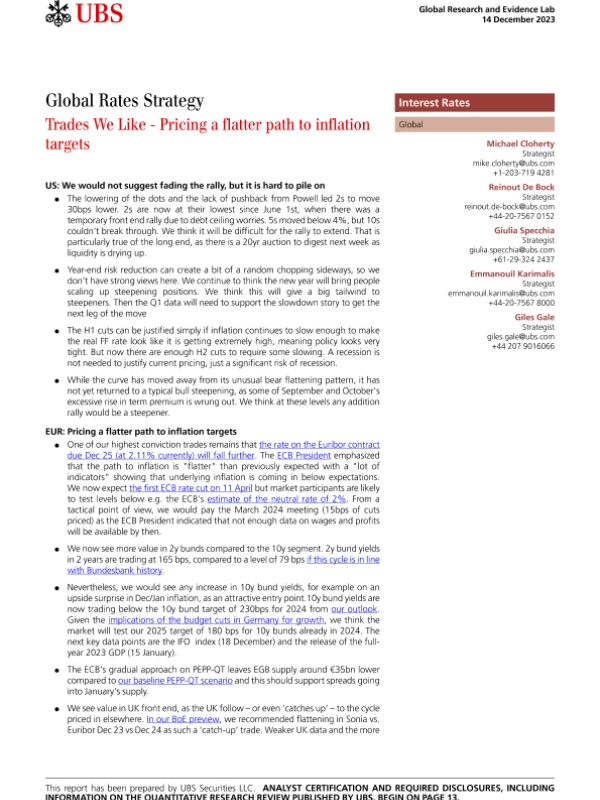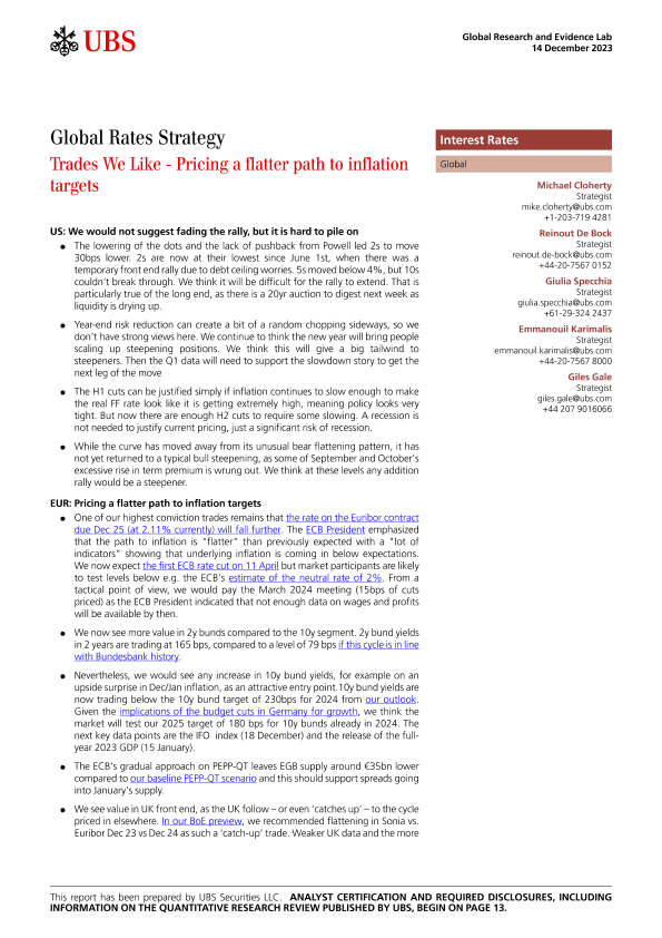 【UBS Securities LLC】【20231214】Global Rates Strategy _Trades We Like - Pricing a flatter path to inflation targets-17页