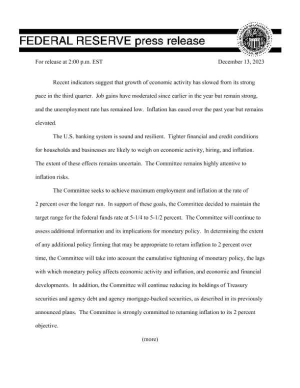 【Federal Reserve】【20231213】2023年美联储会议声明(12月版)-4页