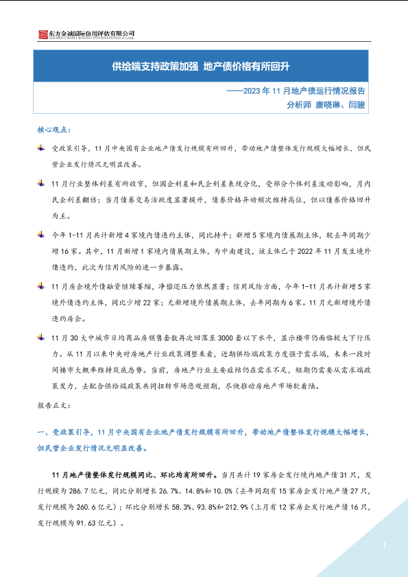 【东方金诚】【202311】2023年11月地产债运行情况报告-9页