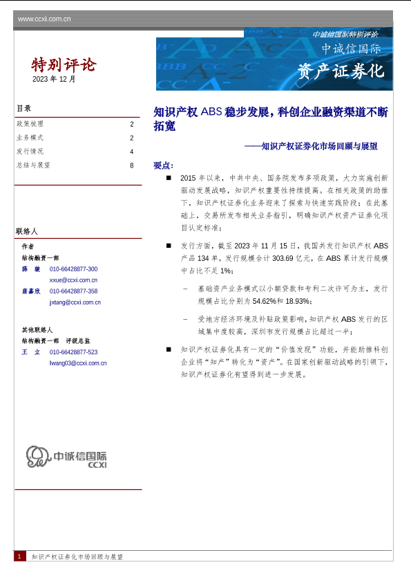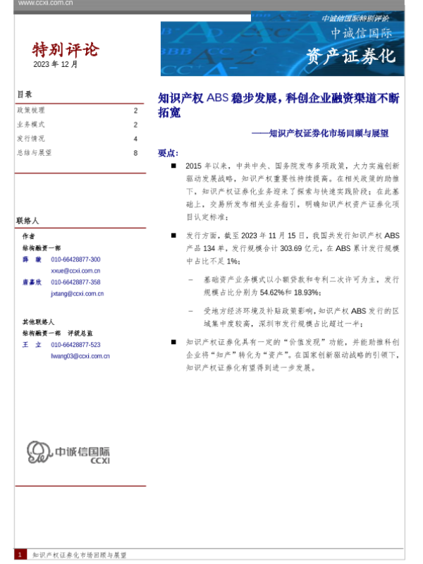 【中诚信国际】【202312】中诚信国际特别评论:知识产权证券化展望-9页
