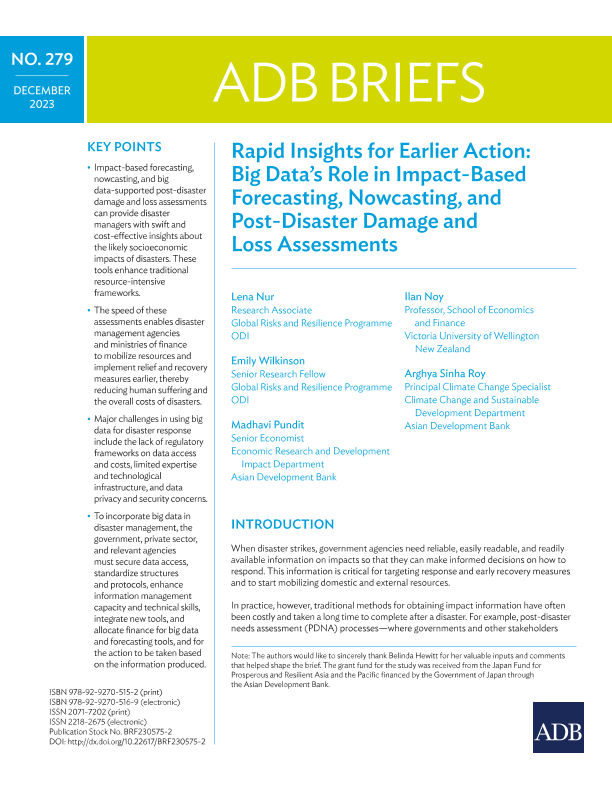 【亚洲开发银行(Asian Development Bank)】【202312】快速洞察早期行动:大数据在基于影响的预测、即时预报和灾后损失评估中的作用-12页