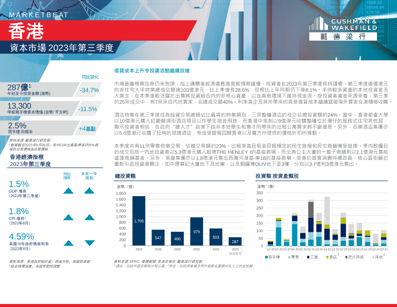 【戴德梁行】【2023】戴德梁行-第三季度香港寫字樓、零售、物流及資本市場報告-8页