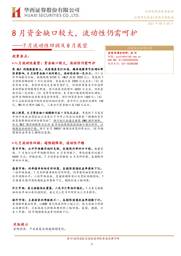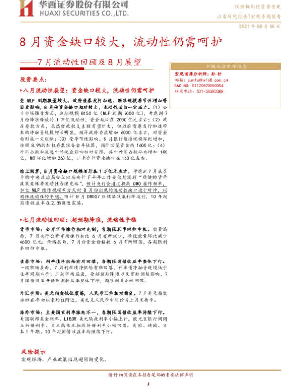 【华西证券】【20210805】7月流动性回顾及8月展望:8月资金缺口较大,流动性仍需呵护-20页