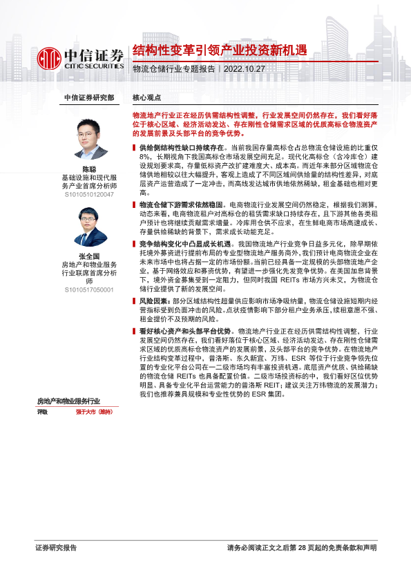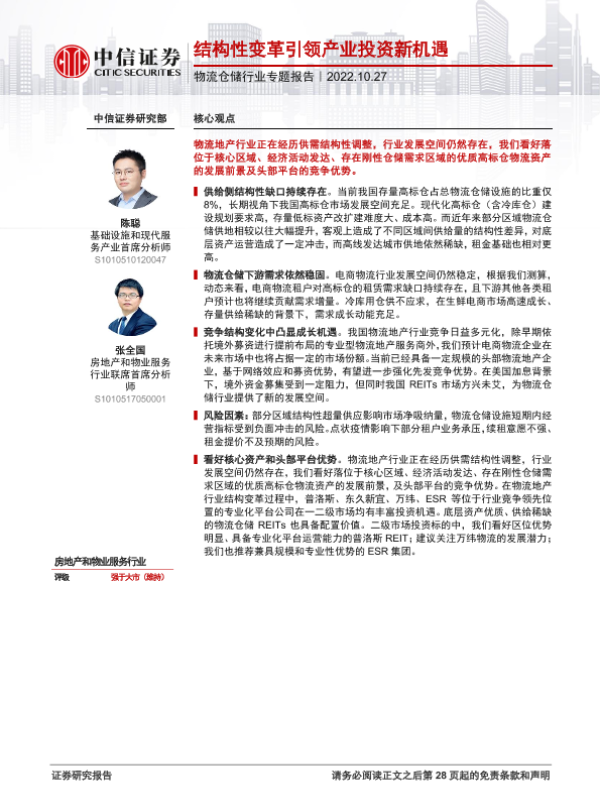 【中信证券】【20221027】物流仓储行业专题报告:结构性变革引领产业投资新机遇-29页