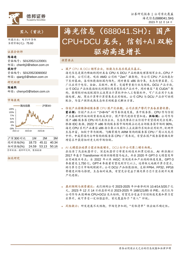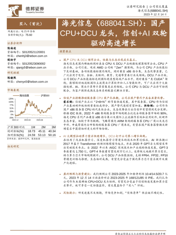 【德邦证券】【20231214】国产CPU+DCU龙头,信创+AI双轮驱动高速增长-28页