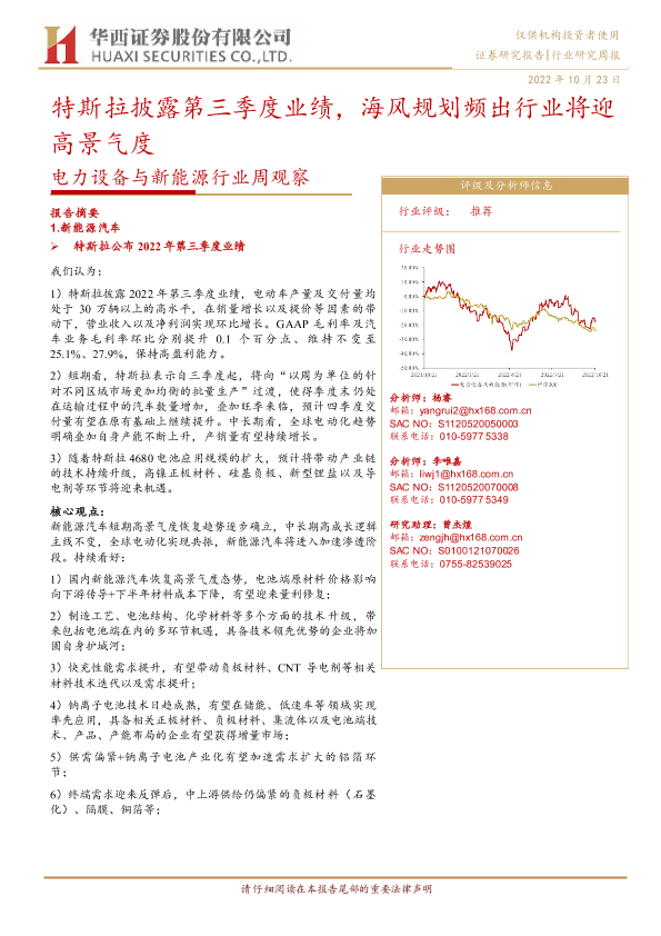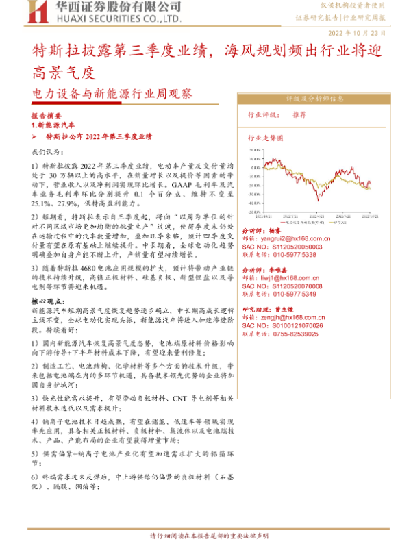 【华西证券】【20221023】电力设备与新能源行业周观察:特斯拉披露第三季度业绩,海风规划频出行业将迎高景气度-21页