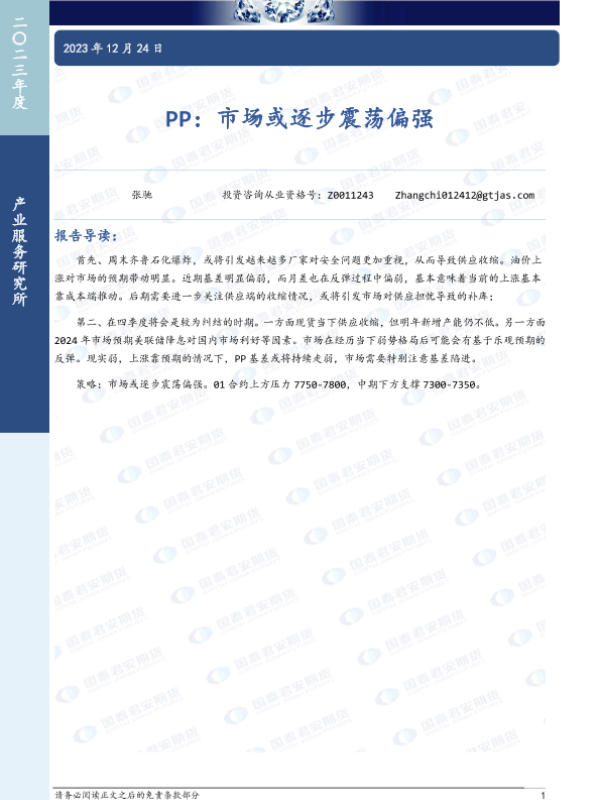【国泰君安期货】【20231224】PP:市场或逐步震荡偏强-10页