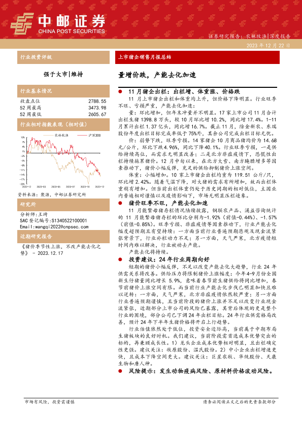 【中邮证券】【20231222】上市猪企销售月报总结:量增价跌,产能去化加速-10页