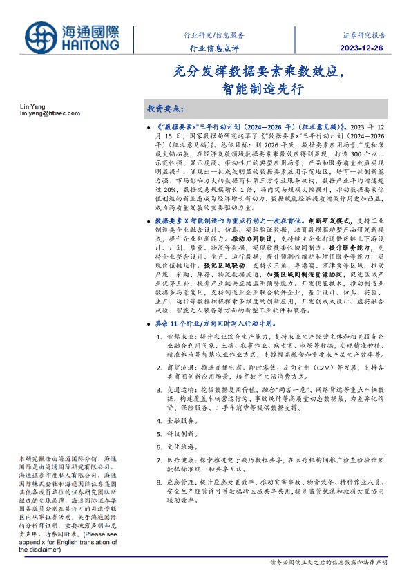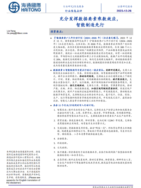 【海通国际】【20231226】信息服务行业信息点评:充分发挥数据要素乘数效应,智能制造先行-10页