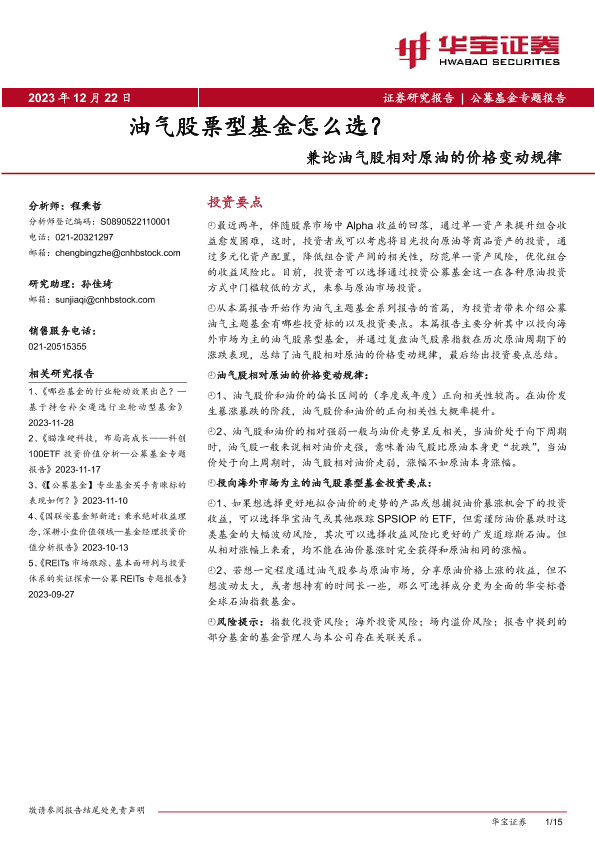 【华宝证券】【20231222】公募基金专题报告:兼论油气股相对原油的价格变动规律-油气股票型基金怎么选?-15页
