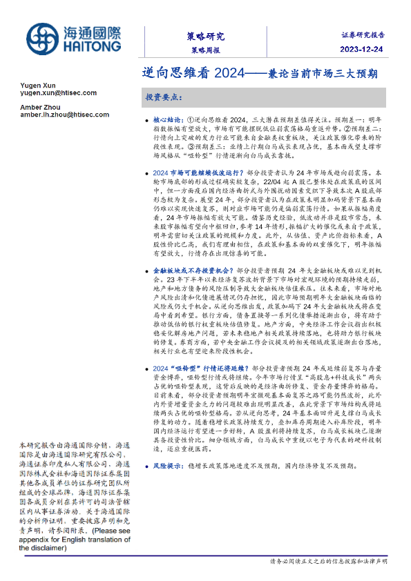 【海通国际】【20231224】逆向思维看 2024——兼论当前市场三大预期-18页