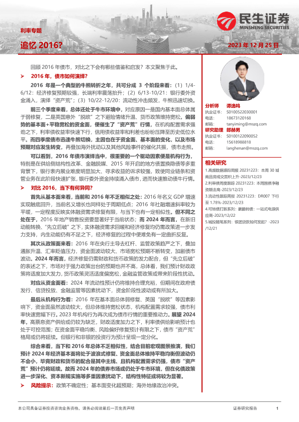 【民生证券】【20231225】利率专题:追忆2016?-25页