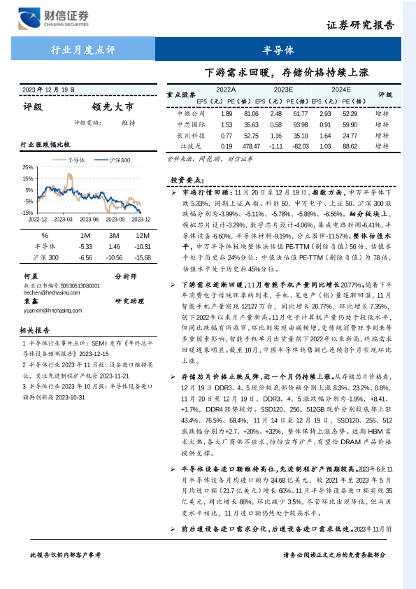 【财信证券】【20231219】半导体行业月度点评:下游需求回暖,存储价格持续上涨-19页