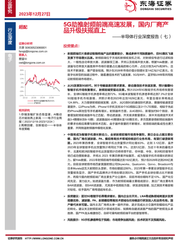 【东海证券】【20231227】5G助推射频前端高速发展,国内厂商产品升级扶摇直上——半导体行业深度报告(七)-38页