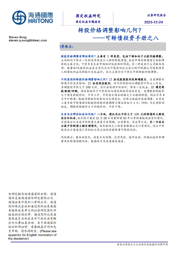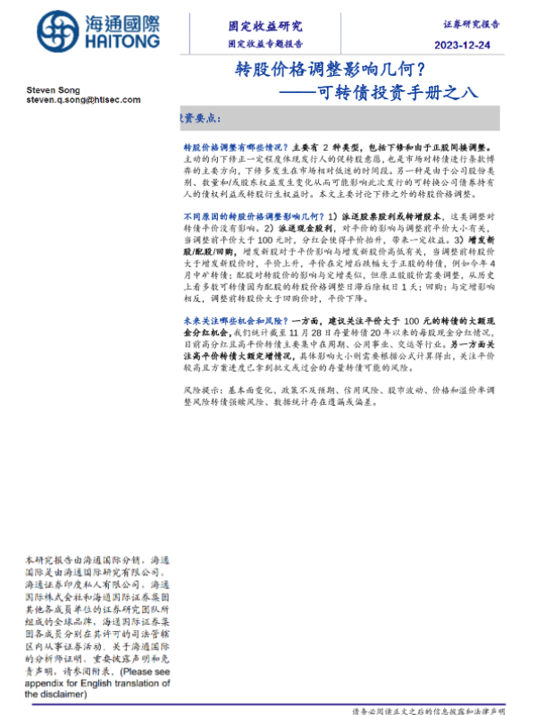 【海通国际】【20231224】可转债投资手册之八:转股价格调整影响几何?-17页