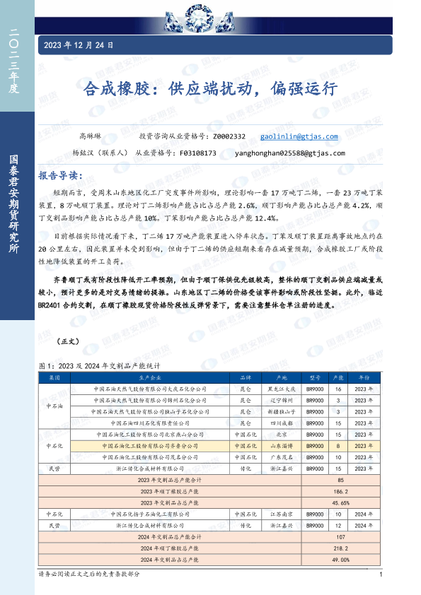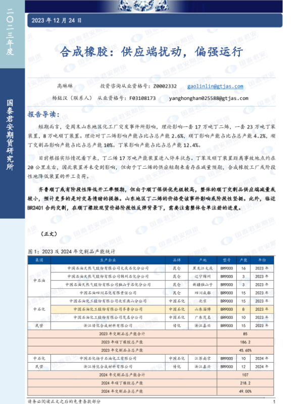 【国泰君安期货】【20231224】合成橡胶:供应端扰动,偏强运行-12页