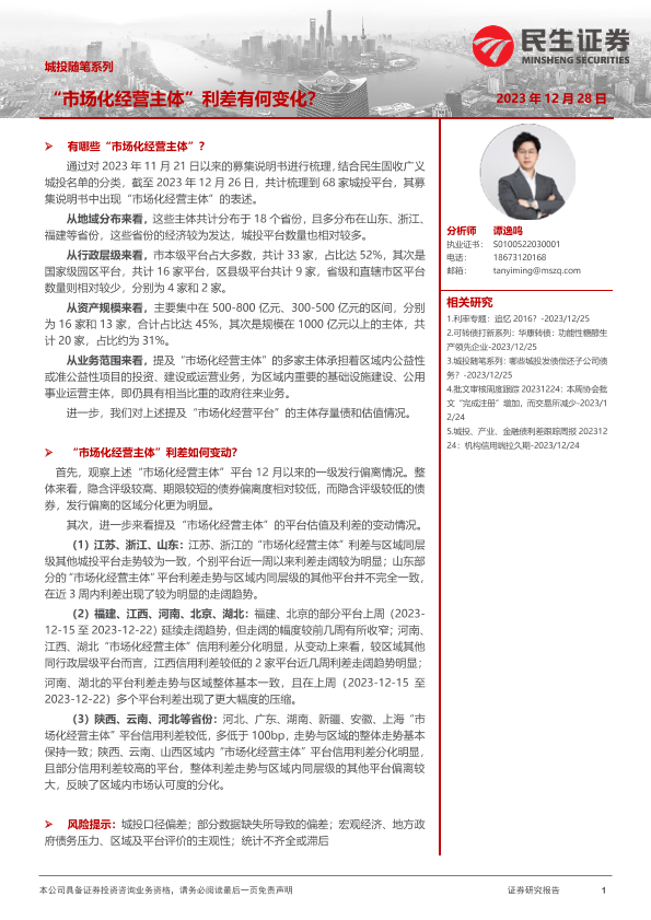 【民生证券】【20231228】城投随笔系列:“市场化经营主体”利差有何变化?-14页