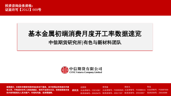 【中信期货】【20231228】基本金属初端消费月度开工率数据速览-10页