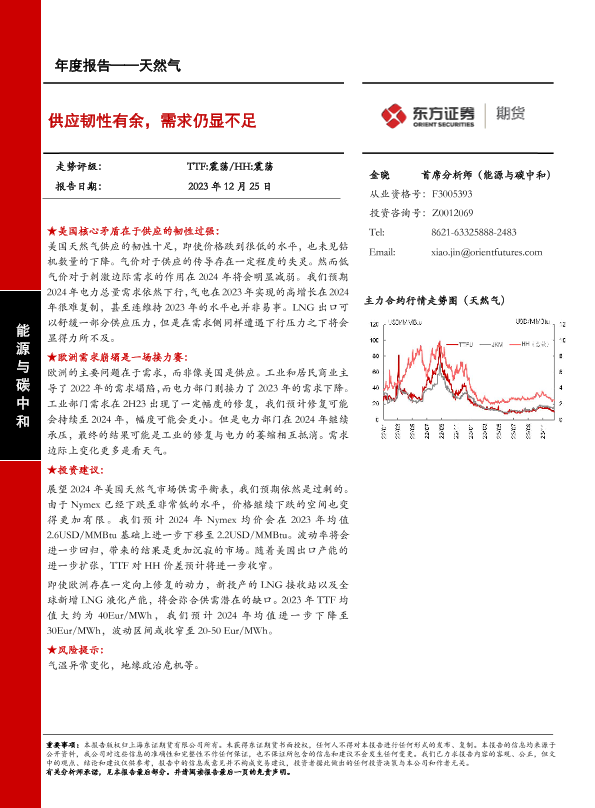 【东证期货】【20231225】天然气年度报告:供应韧性有余,需求仍显不足-26页