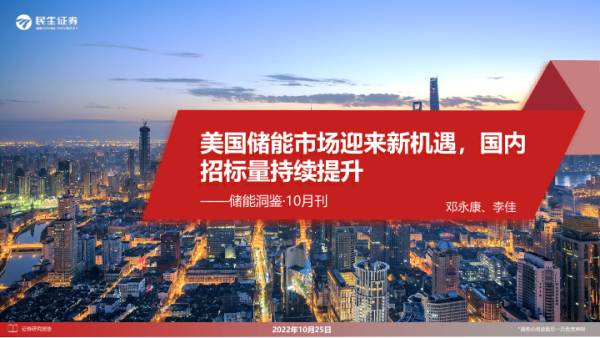【民生证券】【20221025】电新行业储能洞鉴·10月刊:美国储能市场迎来新机遇,国内招标量持续提升-34页