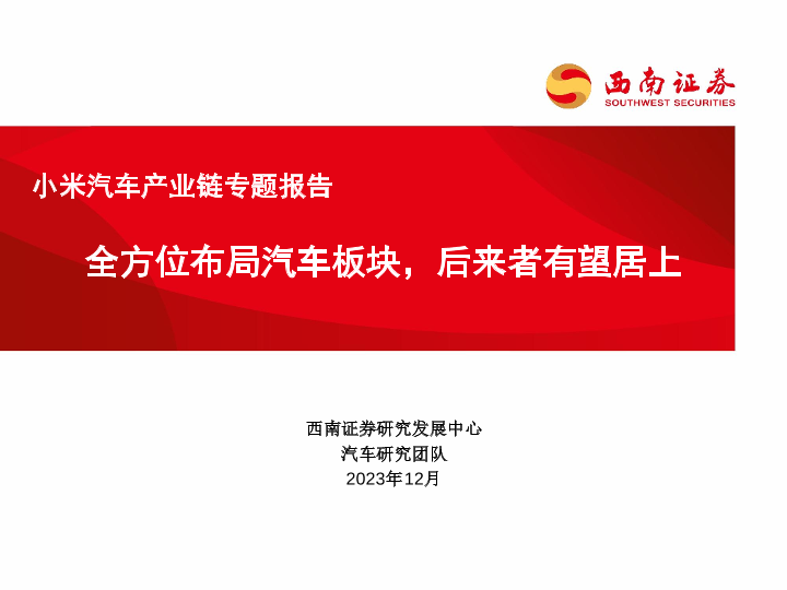 【西南证券】【202312】小米汽车产业链专题报告:全方位布局汽车板块,后来者有望居上-42页