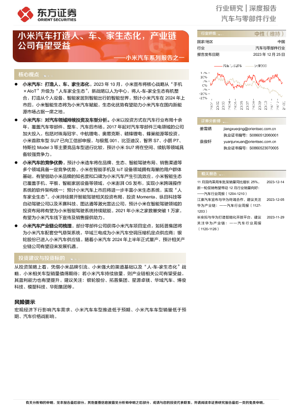 【东方证券】【20231225】小米汽车系列报告之一:小米汽车打造人、车、家生态化,产业链公司有望受益-22页
