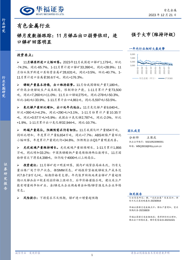 【华福证券】【20231221】有色金属行业:锑月度数据跟踪:11月锑品出口弱势依旧,进口锑矿回落明显-10页