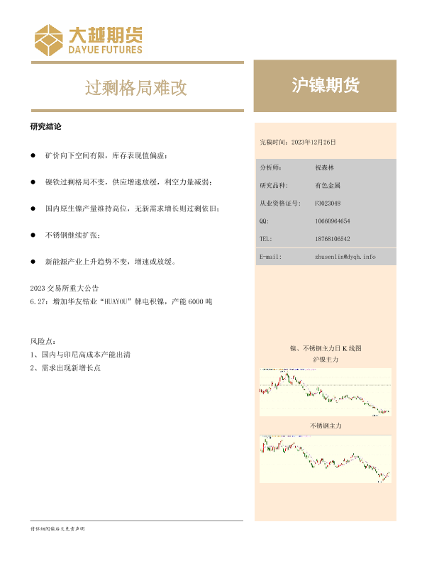 【大越期货】【20231226】沪镍期货年度报告:过剩格局难改-13页