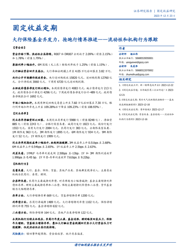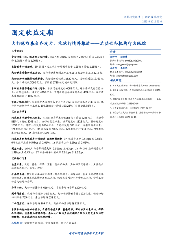 【国盛证券】【20231223】流动性和机构行为跟踪:大行保险基金齐发力,抢跑行情再推进-11页